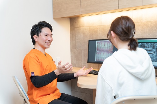 やさしいドクターが対応黙って口の中だけを見るのではなく、お口の中で何に悩んでいるのかや、治療を受けるにあたって不安なことを聞き、親身になって治療を行います。